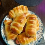 Завернуть рулетик (не плотно). Так же сделать все 8 булочек. Выложить на противень. Накрыть и убрать в тепло минут на 10-15.
