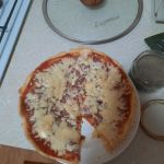 Наша пицца, приготовленная за 10 минут на сковороде, готова. Приятного аппетита!