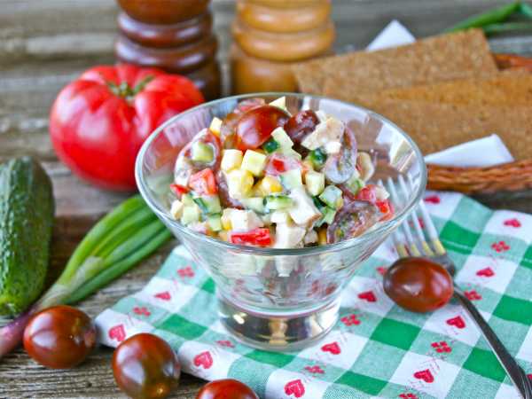 Салат с киви и курицей готов! Можно подавать! Приятного аппетита!
