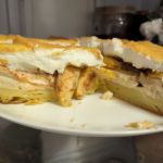 По истечении 25 минут достаем пирог из духовки, выкладываем сверху взбитые белки с сахаром. Затем отправляем пирог обратно в разогретую духовку, но уже с температурой 160 градусов, еще на 25 минут.