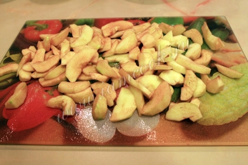 Яблоки вымыть, очистить от сердцевины и кожи, нарезать тонкими дольками.