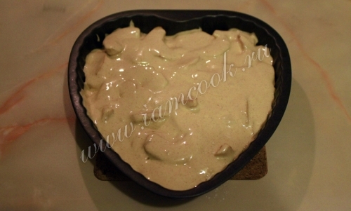 Равномерно залить яблоки тестом.