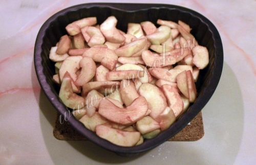 В смазанную маслом форму выложить яблоки.