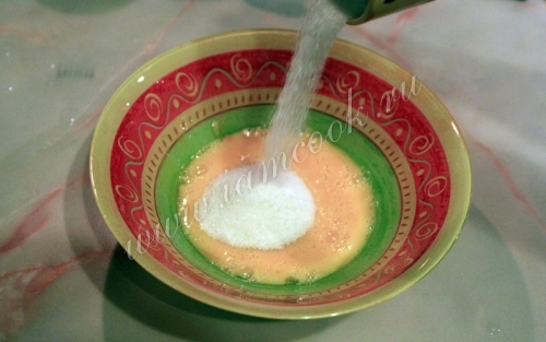 Добавить сахар, растереть с яйцам.