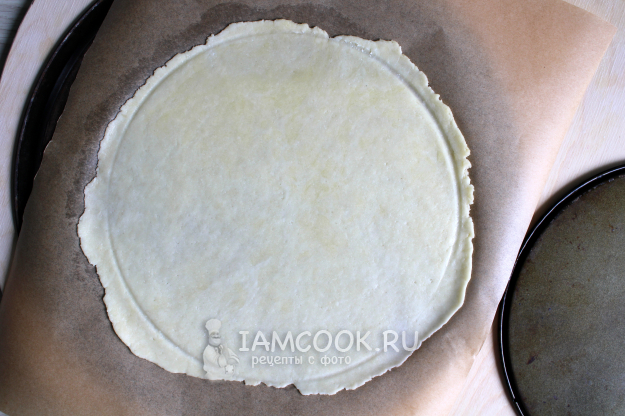 Перед отправкой в духовку приложите к заготовке коржа круглый импровизированный трафарет - это плоское блюдо, крышка, круглое дно от разъёмной формы или форма для пиццы нужного диаметра.