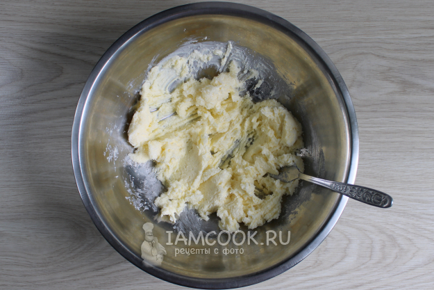 Для теста размягченное при комнатной температуре сливочное масло перетрите с сахаром.
