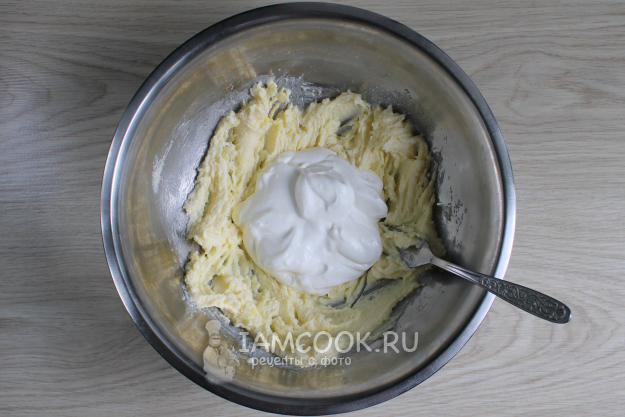 Затем перемешайте это сладкое масло со сметаной, посыпанной содой.