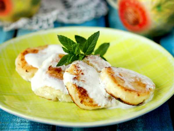 Подавать творожники очень вкусно со сметаной, но вы можете использовать для этой цели мёд, сироп или варенье.