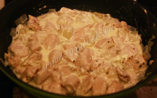 Добавить сметану, все перемешать и тушить под крышкой минут десять.