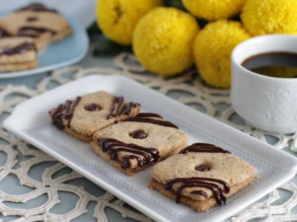 Духовку разогреть до 180 градусов и выпекать печенье в течение 10-12 минут. Затем дать печенью остыть.