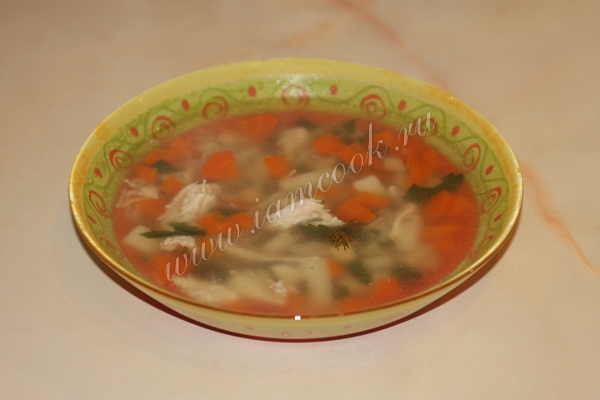 Через 5 минут наш куриный суп с вермишелью готов, приятного аппетита!