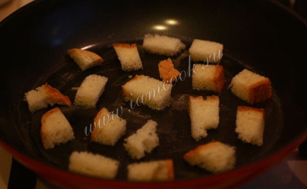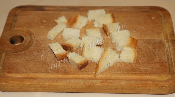 Хлеб порезать кубиками.