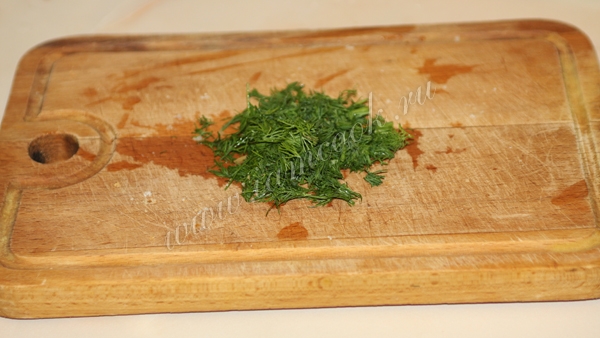 Мелко нарубить зелень укропа.