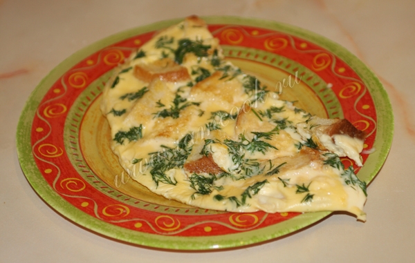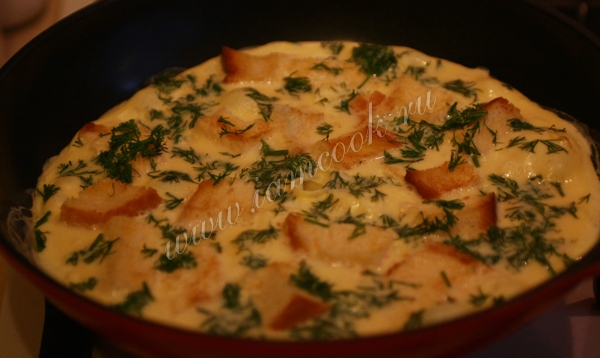 Все, наш пышный омлет с гренками готов.