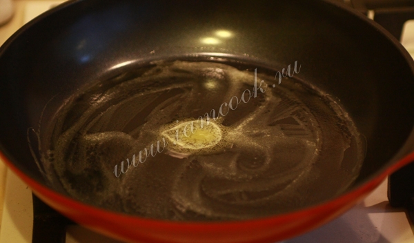 На сковороде растопить кусочек сливочного масла.