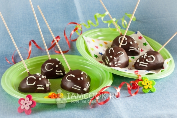 Когда шоколад перестал блестеть, можно начинать рисовать мышкам мордочки сахарной глазурью.