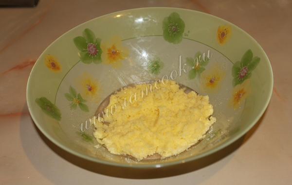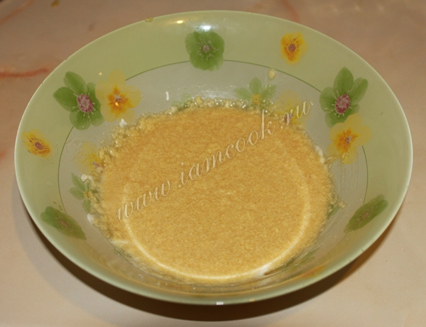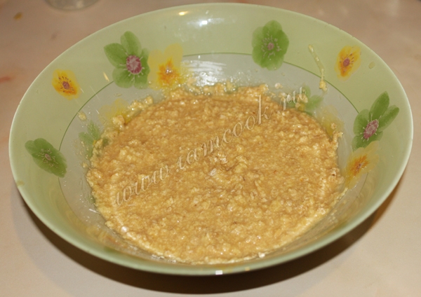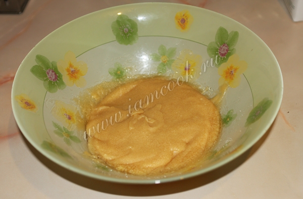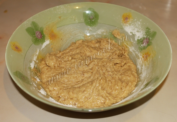 Всыпать разрыхлитель и муку, перемешать. Теперь наше тесто готово.