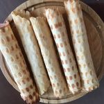 Горячую вафельку сразу же скручиваем в трубочку. Буквально через несколько секунд у нас уже не получится этого сделать. Мы рискуем обжечь себе пальцы, поэтому совсем не лишними будут перчатки.