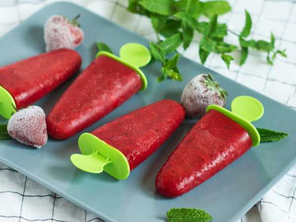6. Теперь заполняем формочки для мороженого процеженным клубничным соком-пюре.