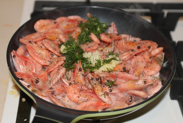 В отличии от отварных креветок, жаренные обладают более насыщенным и пикантным вкусом с ароматом чеснока и зелени. Жарить их не сложнее, чем варить, они также очень хорошо сочетаются с пивом и вином.