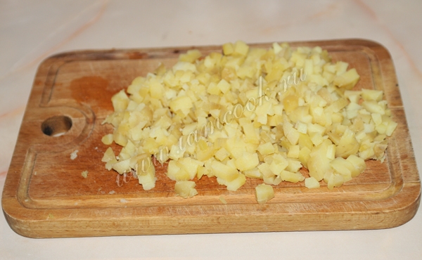Картофель очистить и нарезать кубиками.