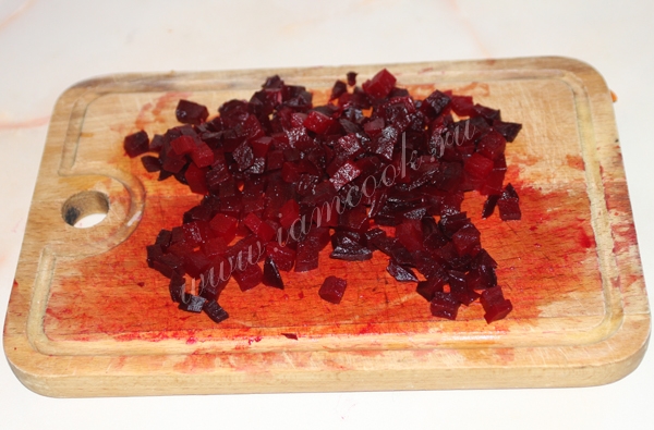 Свеклу очистить и нарезать кубиками.