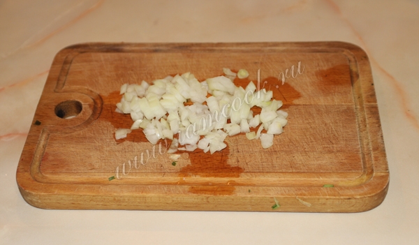 Мелко нарезать репчатый лук.