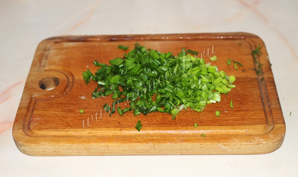 Нарубить зелень укропа и лук.
