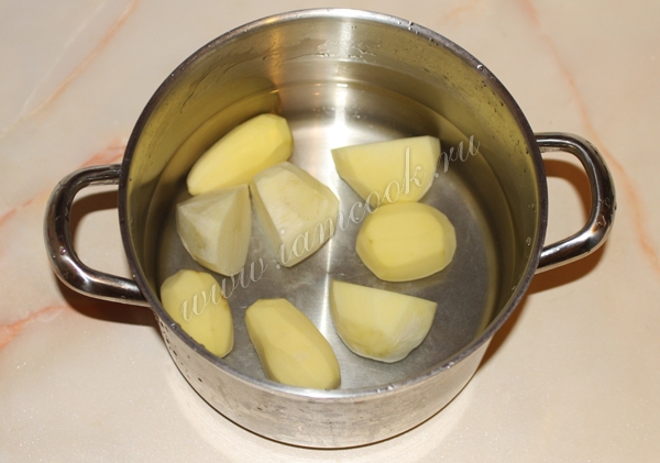 Картофель размять в кастрюле, выложить к нему свеклу со сливками и поставить на плиту. Разогреть буквально в течении 3-х минут помешивая.