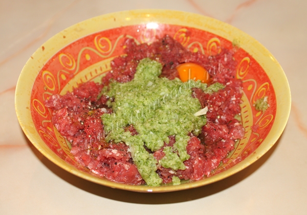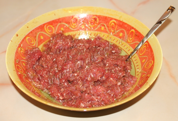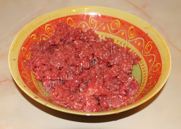Приготовить фарш из 2 видов мяса телятины и свинины в равном соотношении, прокрутив его через мясорубку. Я вам советую делать его самостоятельно, а не покупать готовый.