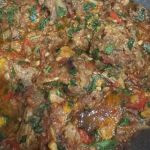 В Аид Кябир (большой мусульманский праздник) с этого блюда во многих мусульманских семьях начинается день. На праздник готовят его обычно в огромных казанках, в которые, кажется, целый баран вместится. А дома используют обычную сковороду. Баранина получается нежнейшей, остренькой... Ах, пальчики оближешь! Что в принципе и приходится делать, так как традиционно это блюдо едят руками - отламывают кусочки лаваша и зачерпывают им мясо и помидоры с луком.