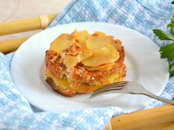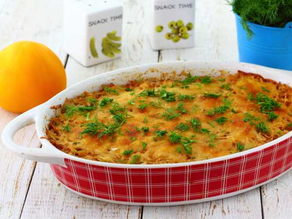 Огнеупорную форму смазала растительным маслом и переложила фарш.