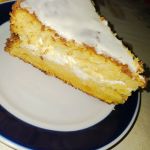 Тыквенный шифоновый бисквит готов. Я просто промазала его карамельным кремом, и мы съели его очень быстро.