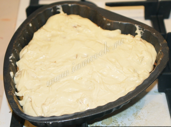 Залить оставшееся тесто в формочку. Духовку разогреть до 200 градусов и убрать нашу будущую шарлотку туда на 50 минут.