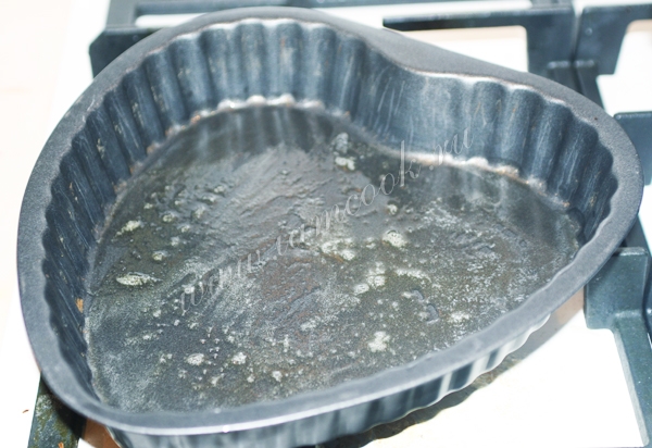 В форме для выпечки разогреть кусочек сливочного масла и смазать ее им.