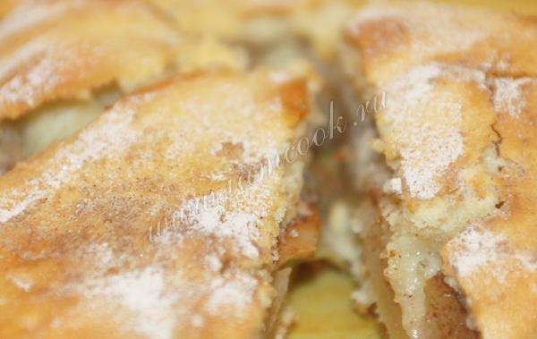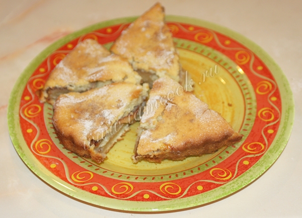 При подаче пирог можно присыпать сахарной пудрой и порезать треугольниками.