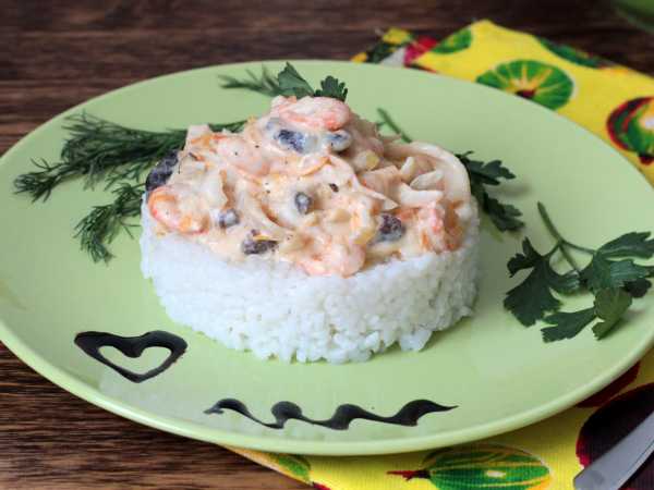 В качестве гарнира к морепродуктам хорошо подойдет рис или паста.