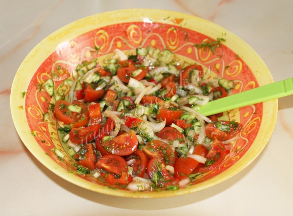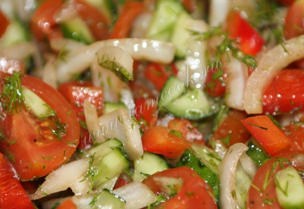 Обычно на обед к основному блюду я готовлю овощной салат. Главное требование, которое я к нему предъявляю заключается в том, что он должен быть легким и витаминным. Сегодня я делюсь с вами одним из таких рецептов.