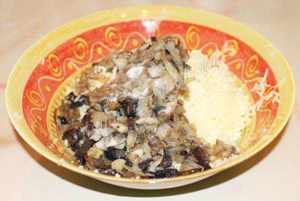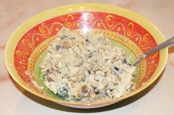 Замешать грибную начинку для пирогов. Прежде чем приступать к лепке пирогов необходимо подождать пока начинка из грибов и картофеля полностью остынет.