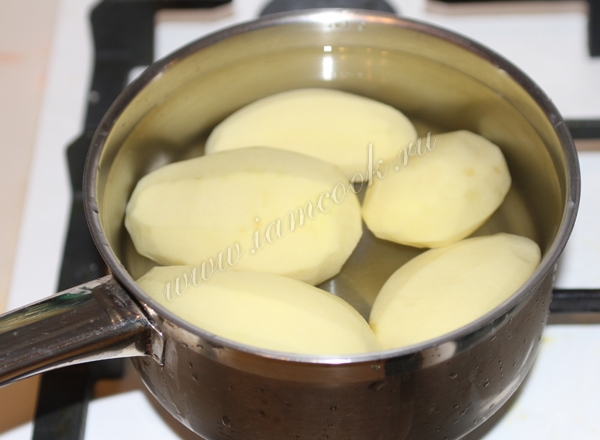 Полкило картофеля очистить, и поставить вариться на огонь.