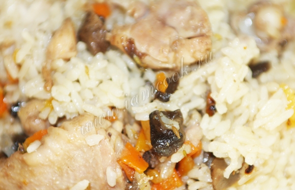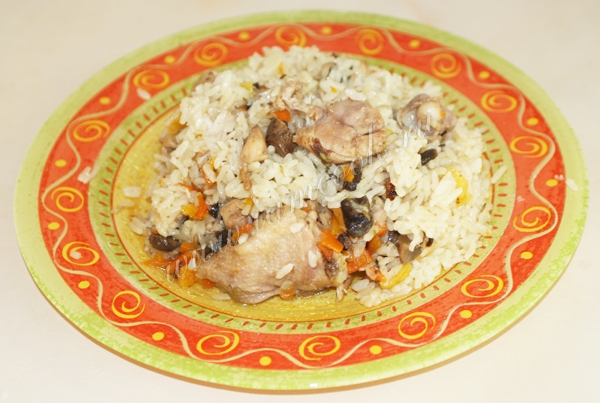 Как известно, куриное мясо отлично сочетается по вкусу с грибами. Сегодня я планировал приготовить плов из курицы и внезапно вспомнил сей факт. Итак, для плова было выбрано куриное филе с кожей (более жирное, чем грудка), и традиционные ингредиенты.