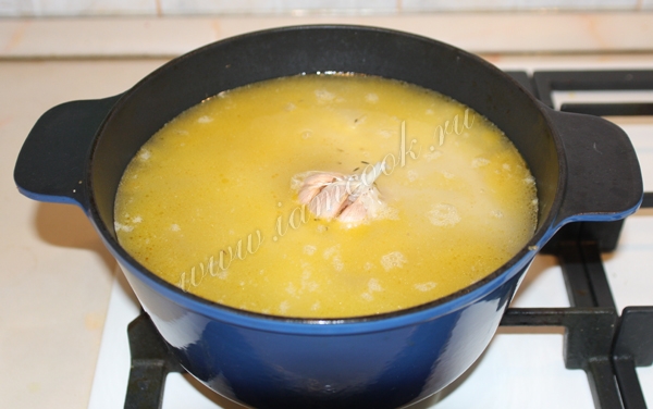 Головку чеснока выложить по центру и слегка заглубить в обжарку, все остальные приправы равномерно высыпать в казан.