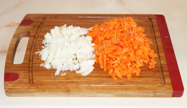 Грибы разморозить и нарезать кусочками среднего размера. Можно использовать сушеные грибы, перед приготовлением их надо замочить.