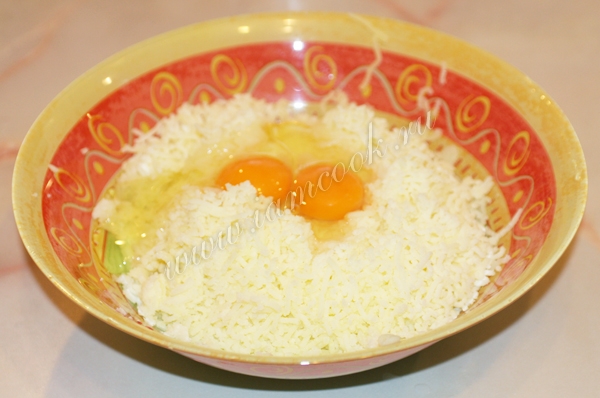 Готовый картофель размять до состояния пюре, добавить 2 куриных яйца и половину чайной ложки соли, как следует перемешать.