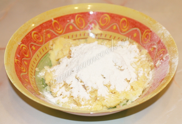 В картофельное тесто добавить 4-5 столовых ложек муки, перемешать. Таким образом мы получим готовое картофельное тесто из которого будем формировать зразы.