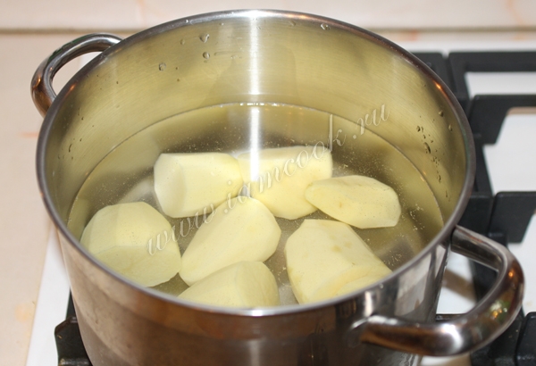 Картофель очистить от кожуры и отварить до готовности. Чтобы он быстрее приготовился можно разрезать каждую картофелину пополам.