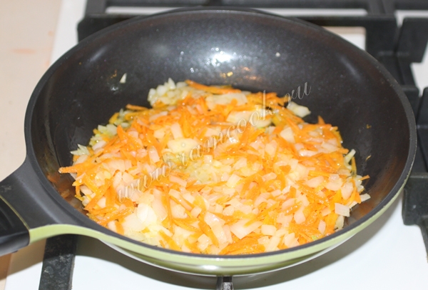 Морковь обжарить с луком на сковороде, около 5-ти минут.