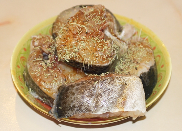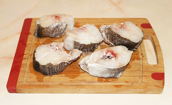 Треску вымыть, очистить от внутренностей и чешуи. Порезать поперек на стейки.