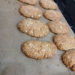 Формируем шарики, а затем на противне приплюснем шарики руками, чтобы получились лепешки. Тесто будет крошиться, но не стоит добавлять лишней воды, просто плотно руками придавайте форму печенью. Отправляем противень с печеньем Анзак в разогретую до 170 градусов С духовку на 20 минут.