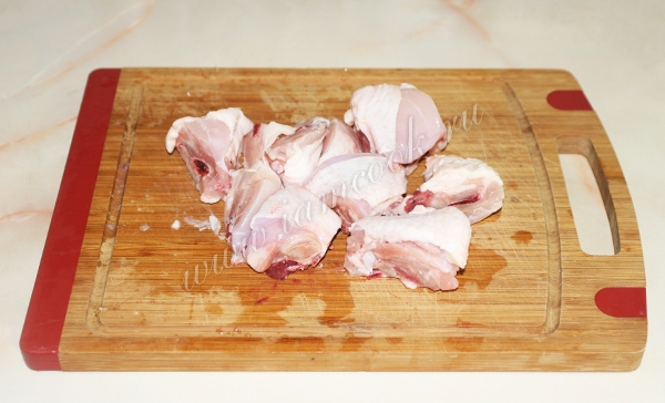 Курицу вымыть и нарезать крупными порционными кусочками.